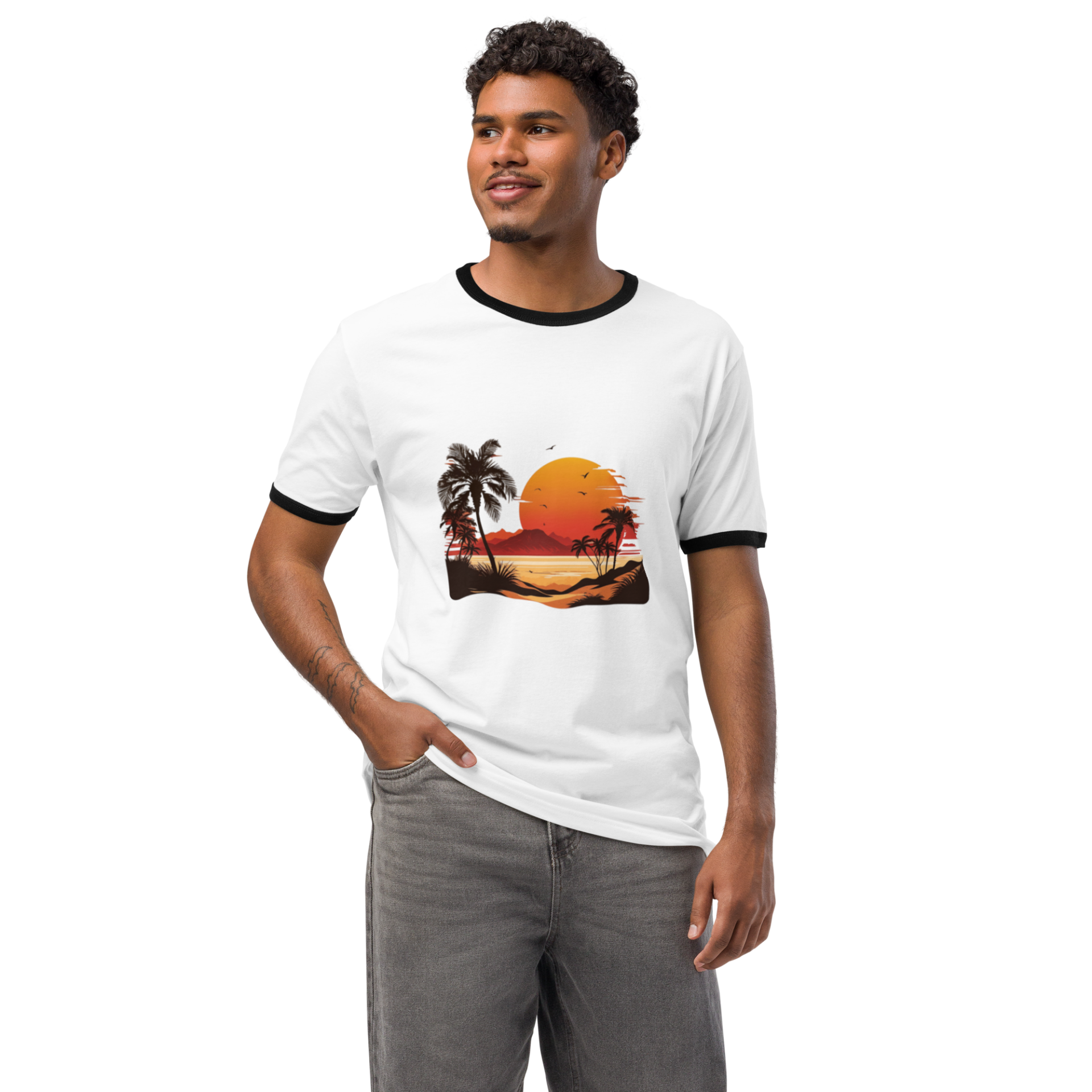 Unisex Retro sunset ringer tee shirt